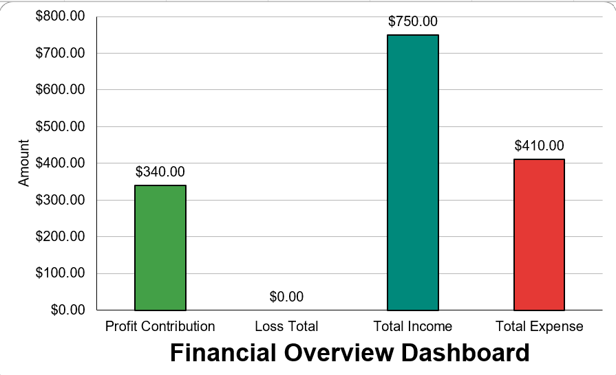 • Automated Financial Overview Dashboard: Visual graphs and charts update instantly as you enter your data.